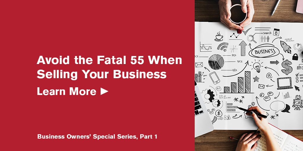 More than 55% of business owners sell their company long before they planned to – a phenomenon some refer to as the Fatal 55 – and it is often for everyday events that optimistic business owners don’t think about. Permanent disabilities, death, divorce and market competition are just some of the reasons that may force someone to sell their business prematurely. For the unprepared owners who find themselves unable to keep working after a life-changing event, selling a business quickly often results in a deeply discounted price.